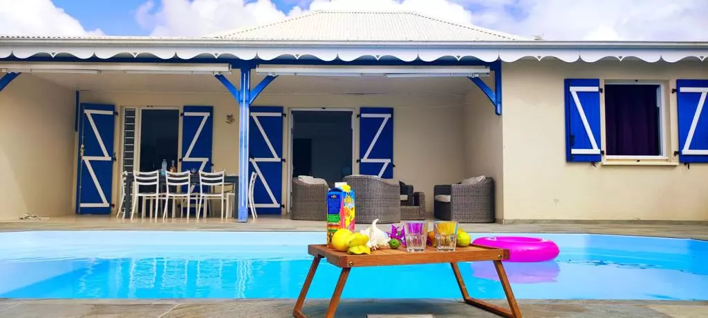 La Villa Canne Bleue, de plein pied et mitoyenne est idéalement située à la Zac pont café de Sainte-Luce, dans le Sud de la Martinique, à 2 minutes à pied de la Plage de ‘Corps de Garde’ et proche des routes des plus belles plages. Avec une cuisine équipée et un salon qui s’ouvre sur une grande terrasse ; sans oublier le BBQ dans le jardin. Pour profiter pleinement de l’ensoleillement de la Martinique, elle dispose d’une grande piscine rectangulaire (4m x 8m). Des filets de protection sont à votre disposition.