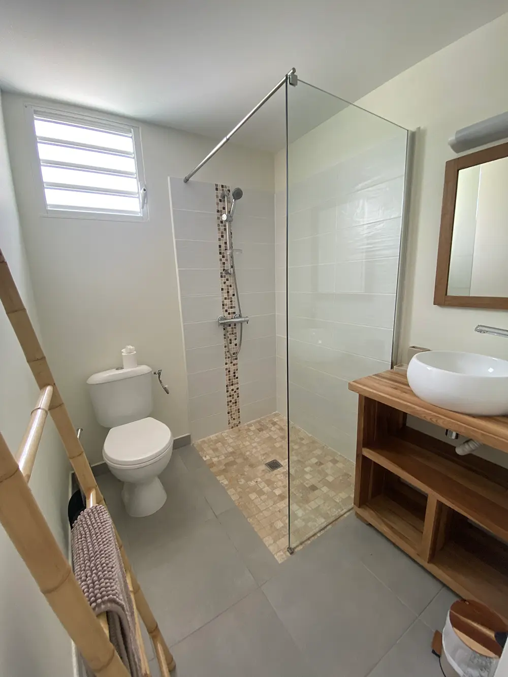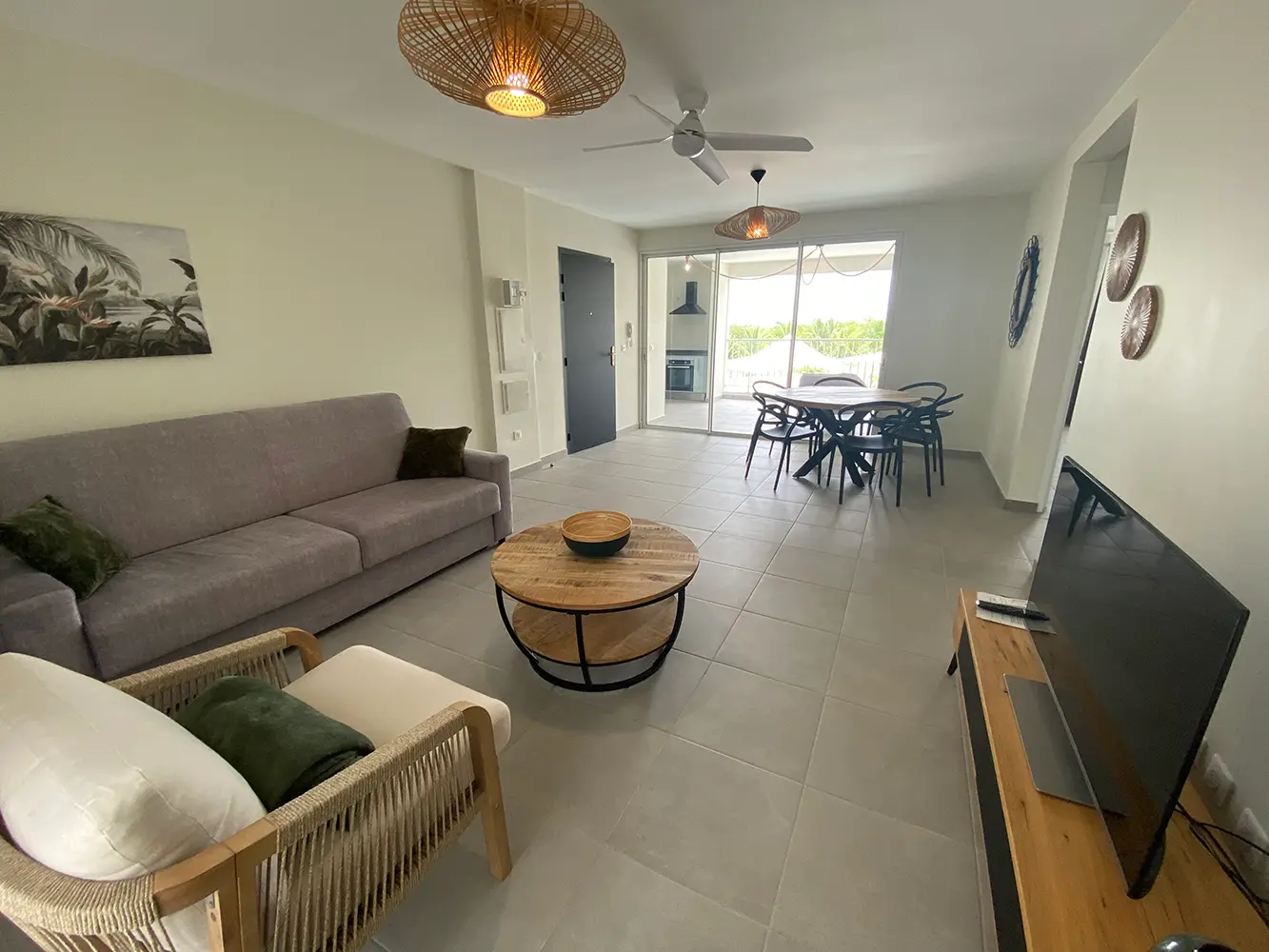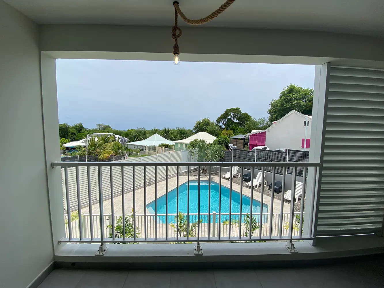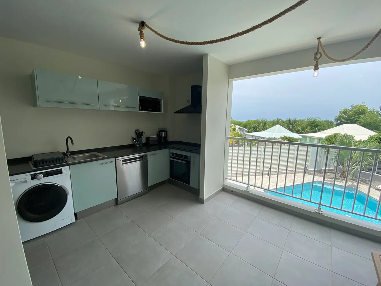 Sur le grand balcon, vous pourrez profiter de la vue sur la mer des Caraïbes, prendre votre apéritif sur les fauteuils d’extérieur et préparer vos repas dans la cuisine entièrement équipée.