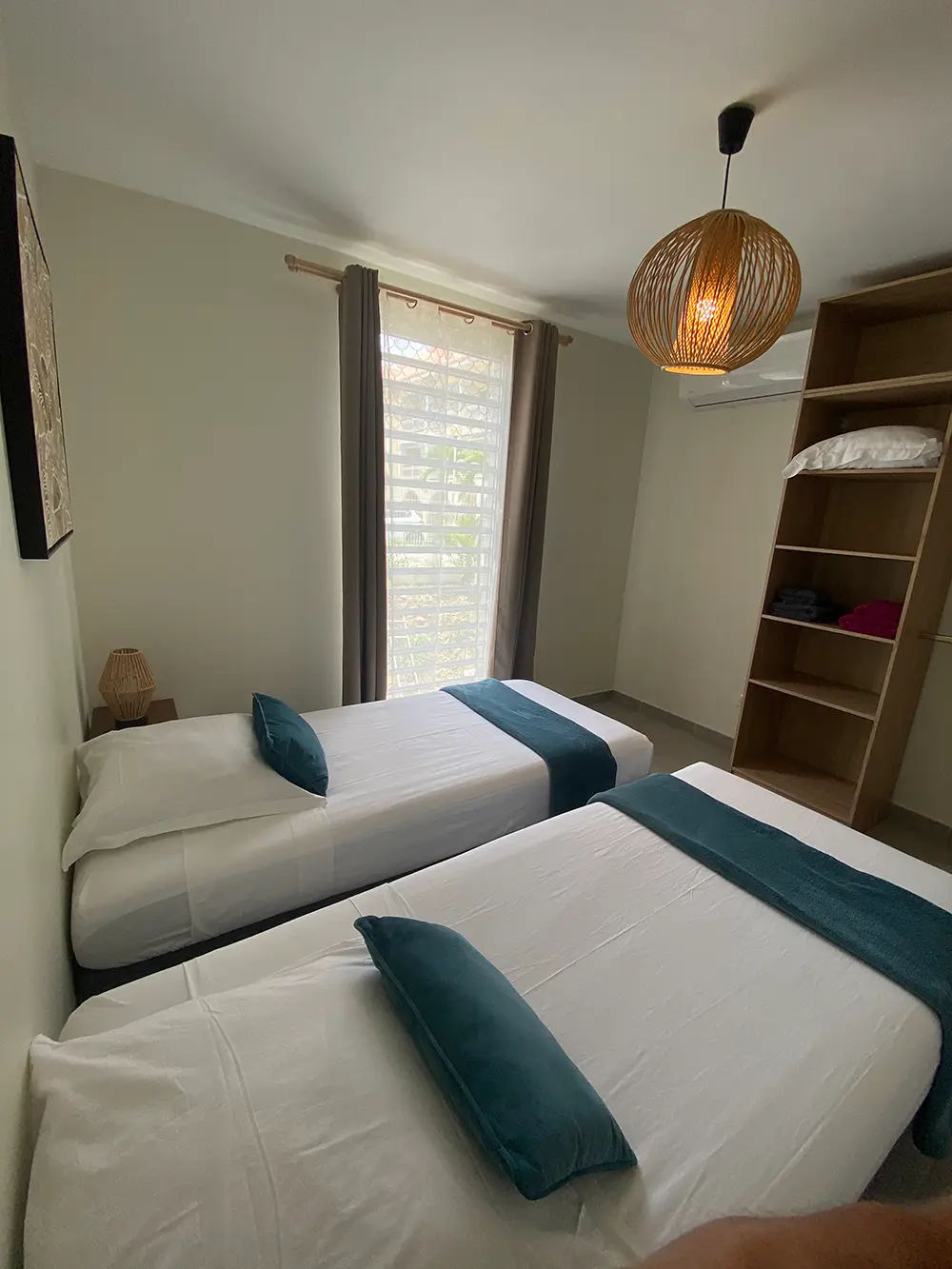 Deux chambres spacieuses et climatisées, une avec un lit double (160×200) et la seconde avec deux lits simples (2x 90×200) vous invite à un maximum de repos. Une salle de bain avec WC attenant à la chambre parentale plus une deuxième avec toilette séparé vous offre un grand confort et intimité.