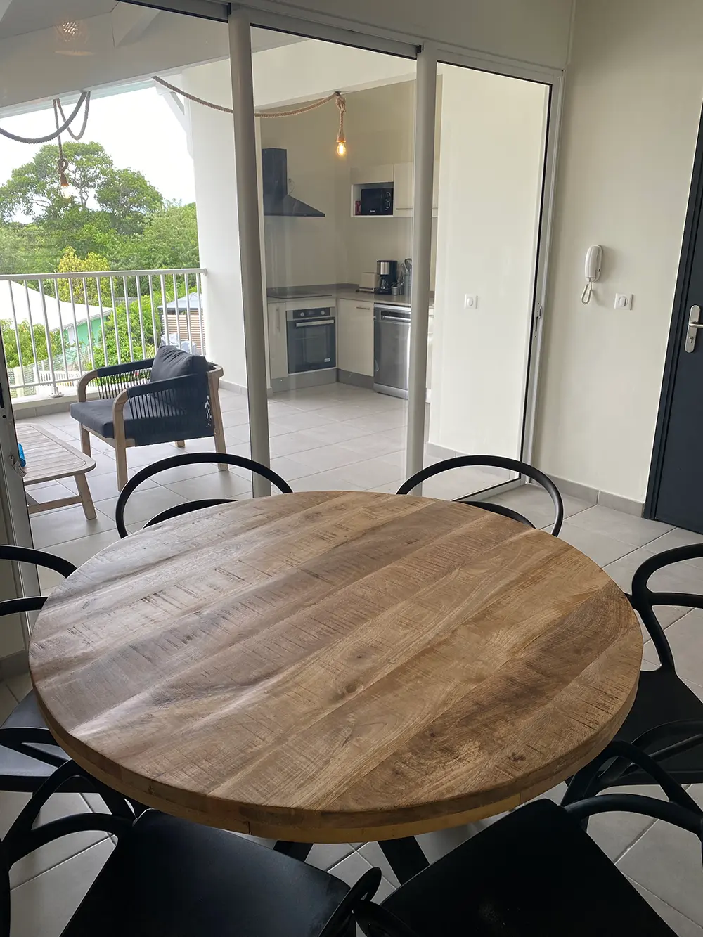 Sur le grand balcon, vous pourrez profiter de la vue sur la mer des Caraïbes, prendre votre apéritif sur les fauteuils d’extérieur et préparer vos repas dans la cuisine entièrement équipée.