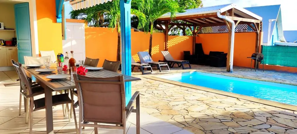 Une belle villa jumelée idéalement située dans le Sud de la Martinique à 2 minutes à pied de la Plage de ‘Corps de Garde’ et proche des routes des plus belles plages. Les villas Makandja A et B sont complètement indépendantes l’une de l’autre, sans vis à vis. Mais vous pouvez aussi louer les deux villas ensemble si vous voyagez avec un groupe de 12 à 13 personnes. Une porte reliant les deux terrasses vous permet d’accéder à l’extérieur de l’autre maison. Chacune des deux maisons a une piscine, une terrasse, un kiosque et un espace de stationnement pour deux voitures. Chaque maison a un salon avec téléviseur.